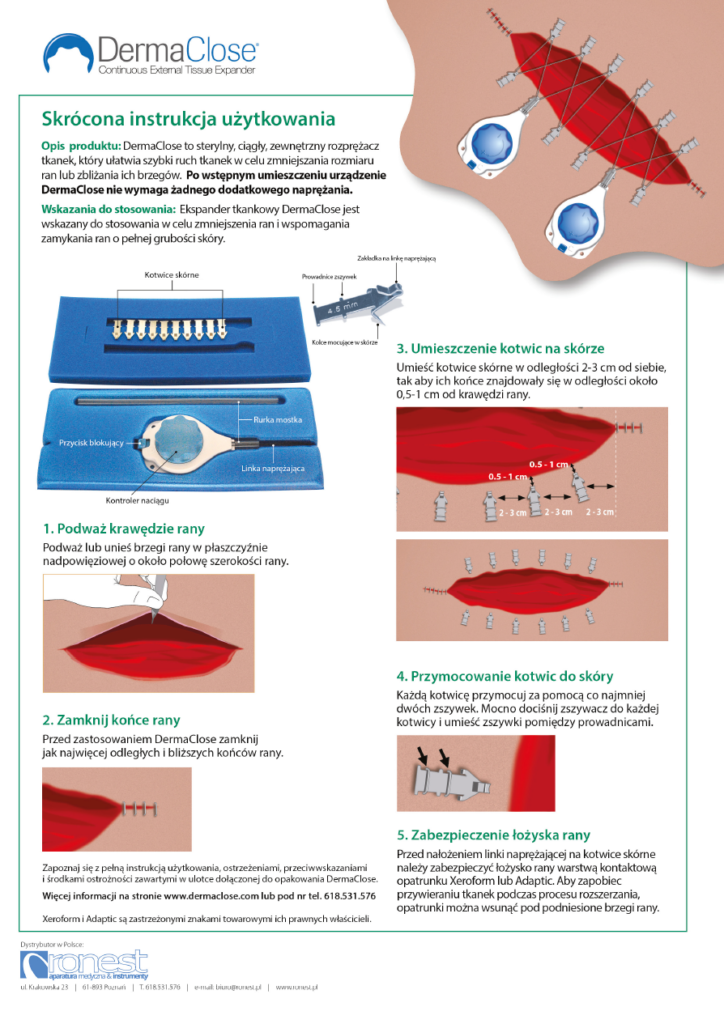 - Skraca czas do zamknięcia, złożoność operacji i ryzyko powikłań związanych z otwartymi ranami