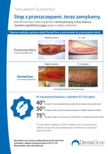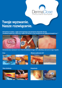 DermaClose to zewnętrzny, ciągły ekspander tkankowy, który ułatwia szybkie przemieszczanie tkanek w celu przybliżenia brzegów rany w stopniu umożliwiającym jej zamknięcie.Po założeniu DermaClose na skórę urządzenie zapewnia szybki ruch tkanek ze stałą, kontrolowaną siłą naciągu 1.2 kg i nie wymaga ponownego dokręcania ani regulacji.